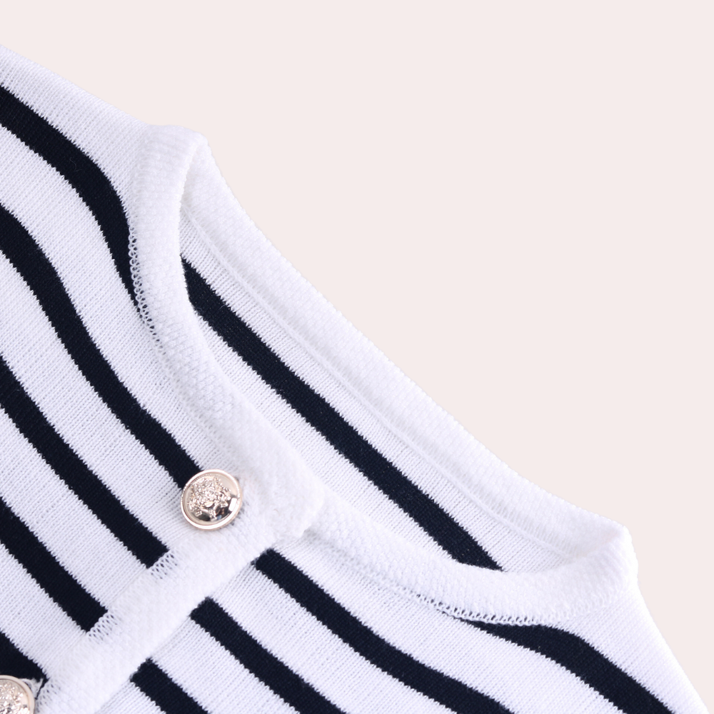 The iconic gold buttons of the cardigan are a luxurious detail. These eye-catching elements will make you stand out in any situation.