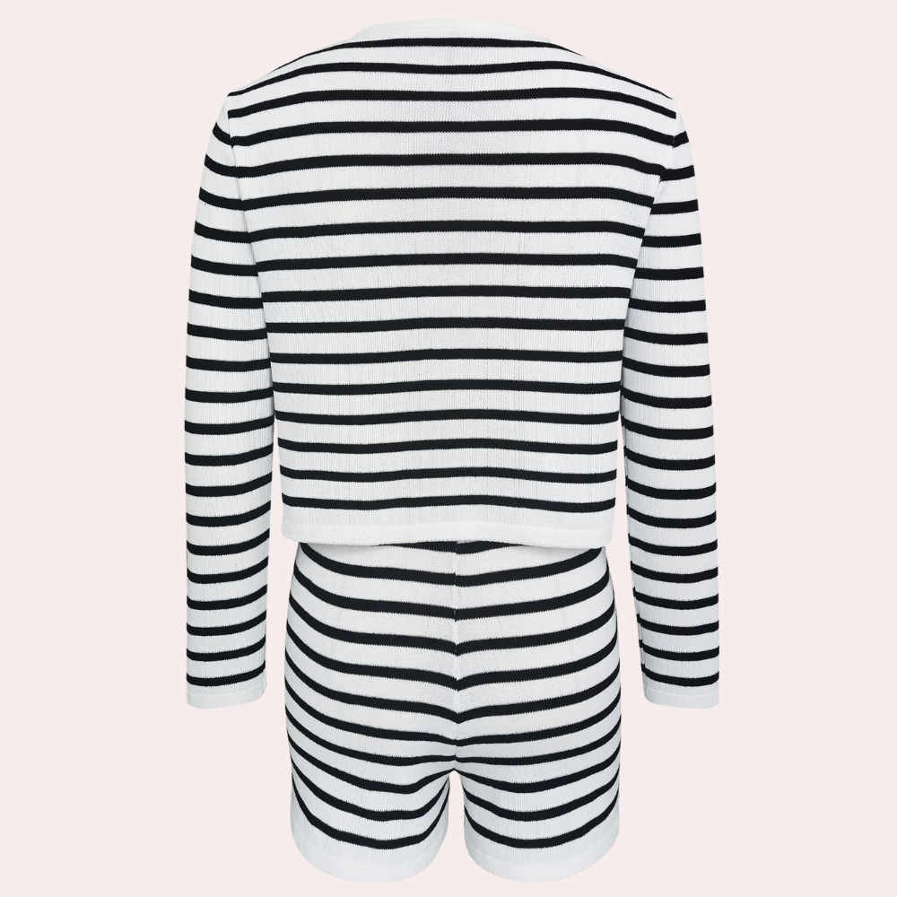 This elegant striped cardigan and shorts will add a sophisticated touch to everyday outfits. Perfect for any occasion, it effortlessly combines style and comfort.